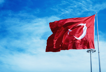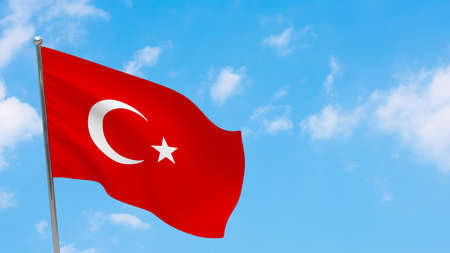 Turkey flag on pole. Blue sky. National flag of Turkey