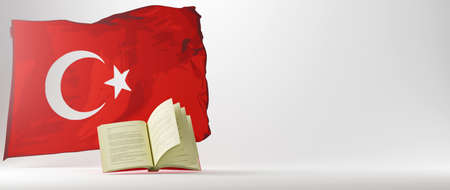 Education concept. 3d of book, Turkey flag on white background. Modern flat design isometric concept of Education. Back to school.