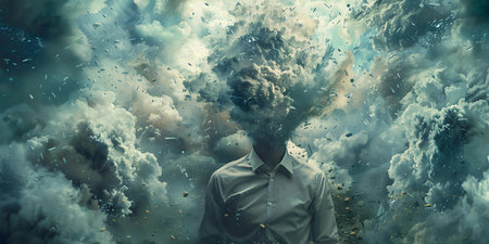 A person fighting through various mental health conditions expressing deep emotions. Concept Mental health struggles, Emotional expression, Inner turmoil, Vulnerability, Personal growth