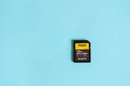 GRANADA, ANDALUSIA, SPAIN. APRIL 7TH, 2021. Sony SF-G Tough 128gb The fastest SD card for writing data