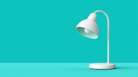 A sleek desk lamp shines bright against a vibrant teal background, perfect for enhancing modern interior spaces and providing stylish illumination in workspaces.
