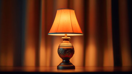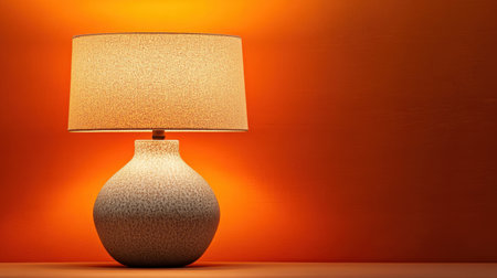 This elegant table lamp features a soft, warm glow against an orange backdrop, perfect for creating a cozy and inviting atmosphere in any room.