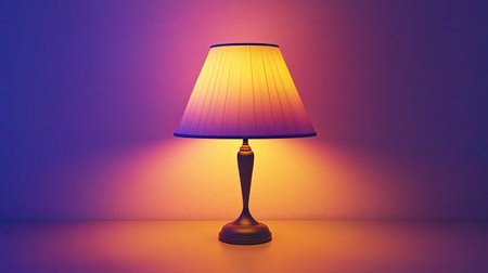 An elegant table lamp emits a warm glow against a gradient background, creating a cozy and inviting atmosphere perfect for any interior space.