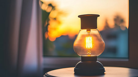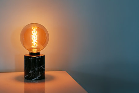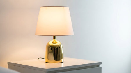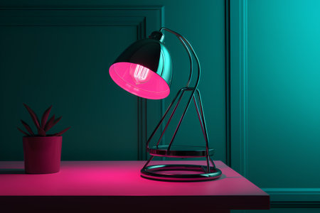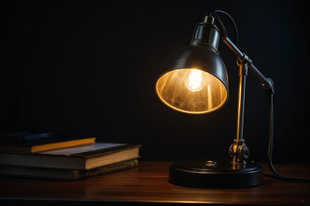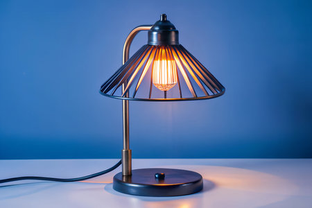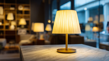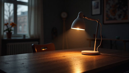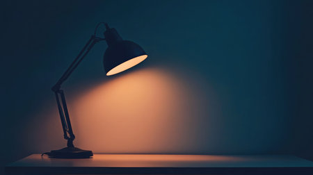 A stylish desk lamp emits a warm glow across a minimalist surface, creating a soothing atmosphere perfect for enhancing focus and interior ambiance in modern spaces.