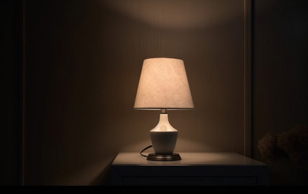 dimmed table lamp casting shadow on a bedroom wall, created with generative ai