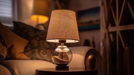 Stylish Interior Lamp Illuminating a Luxurious Lounge Area with Soft Lighting