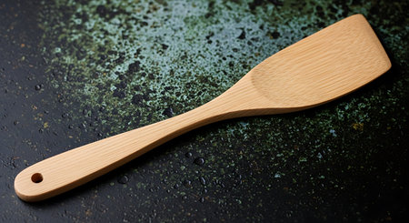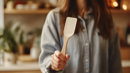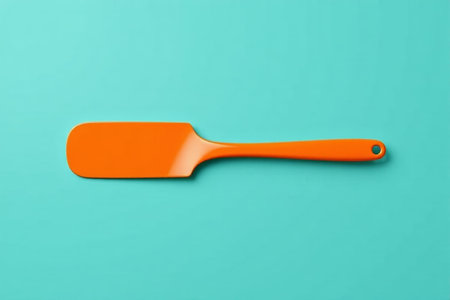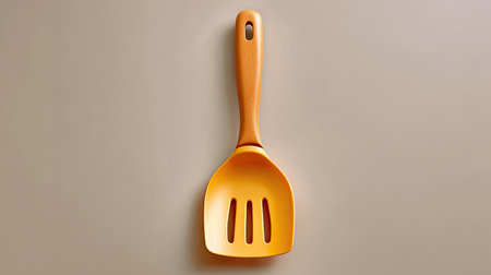 A bright orange spatula with a wooden handle, ideal for cooking and baking. Its ergonomic design is perfect for food preparation and kitchen use, showcasing modern aesthetics.