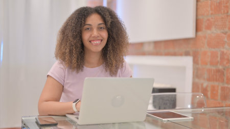 Portrait of two young people managing small business while working at wooden table with laptop in pottery workshop, copy space