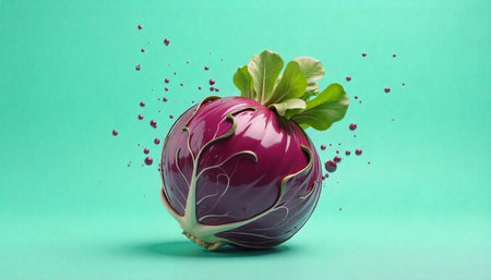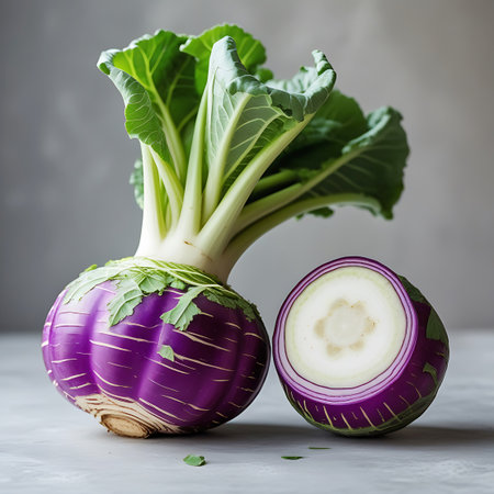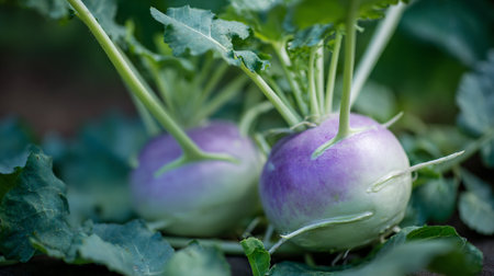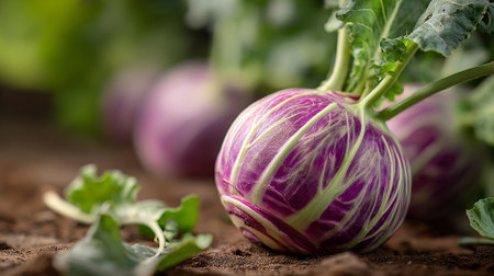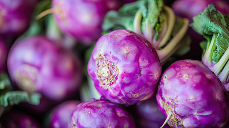 Close-up of organic kohlrabi, vibrant and purple, perfect for healthy recipes.