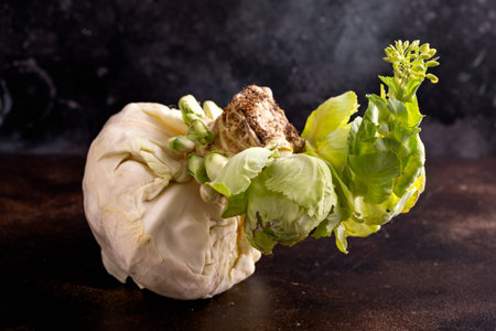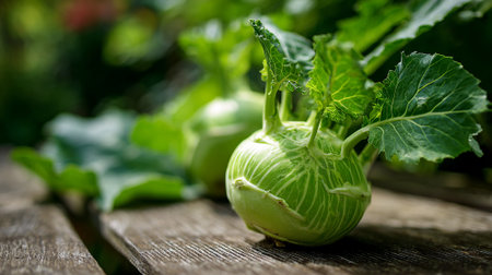 Fresh Organic Kohlrabi on Weathered Wood Surface, Ready for Preparation