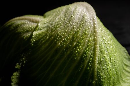 Big head of fresh cabbage, spring harvest, on dark rustic background, selective focus, minimalism, low key