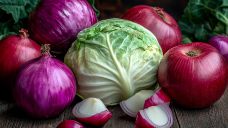 Vibrant Purple Cut Cabbages on Colorful Background AI Generated