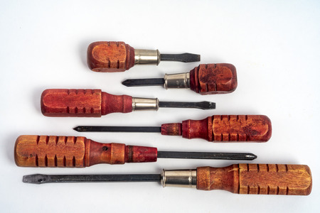 Wooden Handle, retro, vintage, old screwdriver set, pan and phillips
