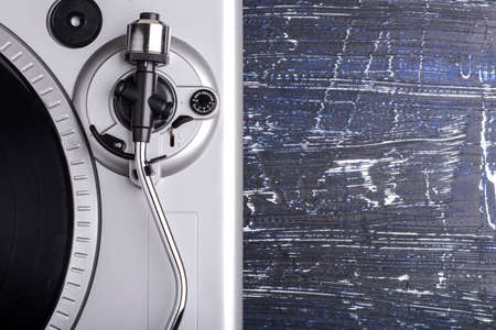 background of old retro vinyl record player, close-up, long photo