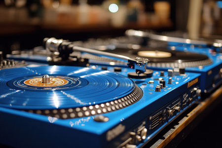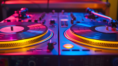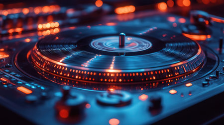 Dj equipment in action at a vibrant nightclub music event urban setting close-up view creative atmosphere