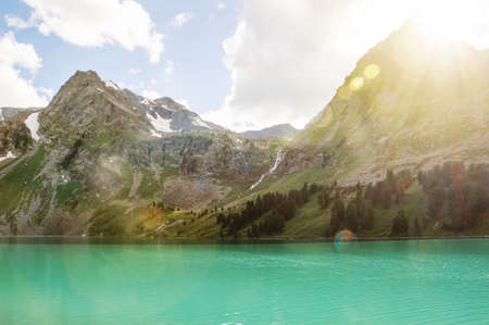 Beautiful mountain landscape with turquoise lake in the mountains.
