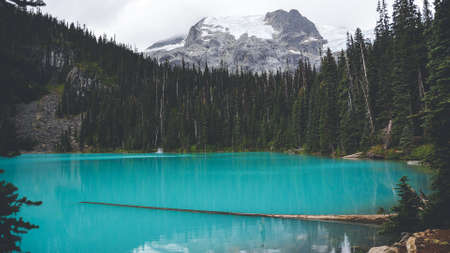 Beautiful turquoise lake in the mountains surrounded by coniferous forest