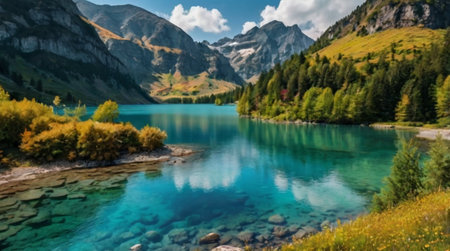Majestic mountain lake in Switzerland. Idyllic landscape with clear mountain lake in the Alps.