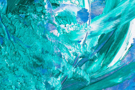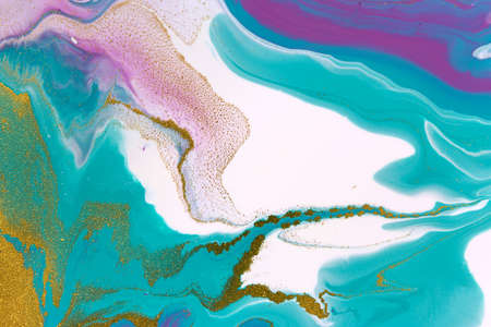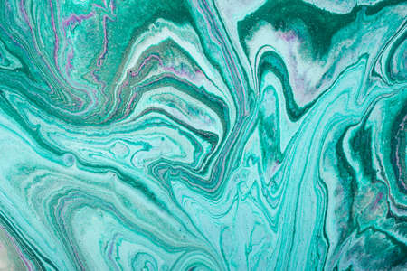 Closeup of mixed turquoise and purple abstract marble texture. Hand painted beautiful pattern, wallpaper or background for print design as invitation or greeting cards. Ocean or sea artwork
