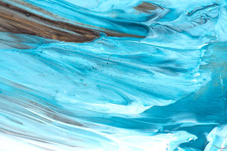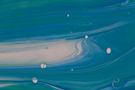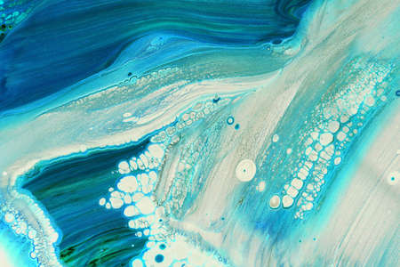 Abstract fluid acrylic painting. Marbled blue abstract background. Liquid marble pattern. Hand painted background with mixed liquid blue and green paints. Modern art.