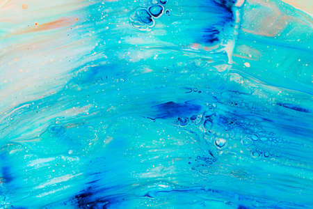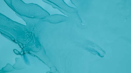Abstract paint background. Defocused teal color liquid fluid gradient flowing spreading covering chaotically glitter surface