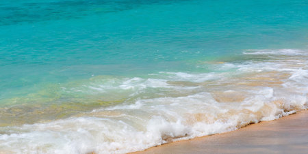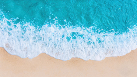 Serene ocean waves crashing on realistic sandy beach background for summer design
