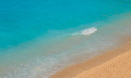 Sand beach with white sea soft wave on top view for assembling an article about travel in summer holiday or ocean coast nature.