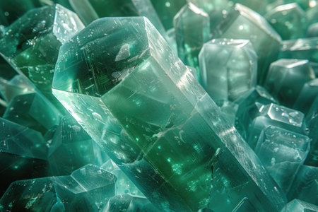 3d render, abstract background with green emerald crystals, close-up