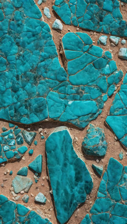 In a sunlit landscape, vibrant turquoise nevada blue stones captivate with their vivid colors and jagged patterns, showcasing Earth mineral artistry.