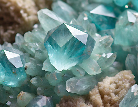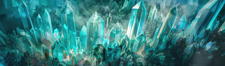 AI Generated. Closeup of aquamarine crystals growing upwards with a blurred background