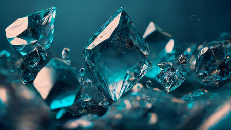 A shimmering turquoise diamond surface with bright, sparkling facets reflecting light. The vibrant, jewel-toned effect creates a dynamic, luxury feel, ideal for modern fashion brands or high-end promotional designs.