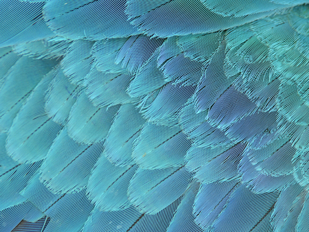 Beautiful color feathers as background, closeup. Blue feather texture.