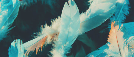 Vividly colored feathers creating a soft and ethereal background, showcasing a blend of pink and blue hues for artistic expression