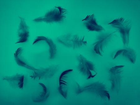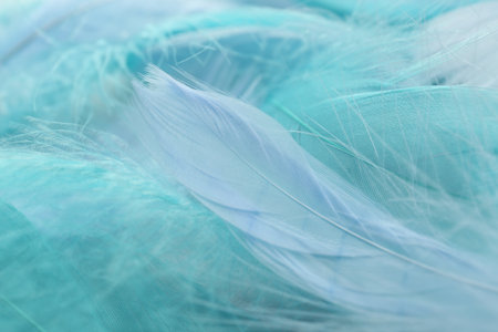 Beautiful feather background in light turquoise blue and teal colors. colorful fluffy feathers