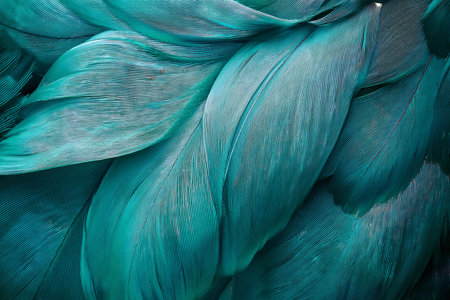 Turquoise feathers are beautifully arranged, displaying intricate patterns and textures that highlight their vibrant color and natural elegance.