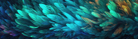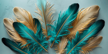 AI Generated. Teal and Gold Feathers Elegant Texture Background