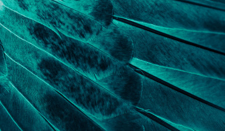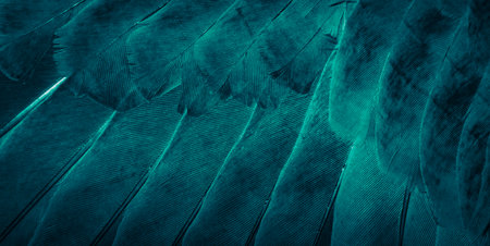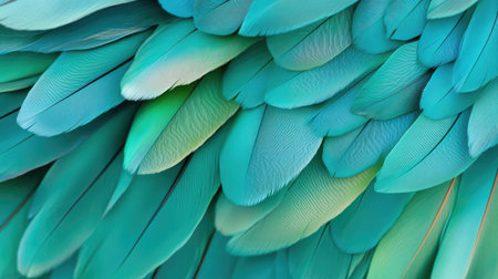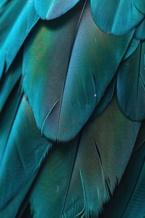 A stunning close-up of vibrant blue and green feathers showcases the intricate textures and patterns found in exotic bird species, offering a captivating view of nature's beauty.