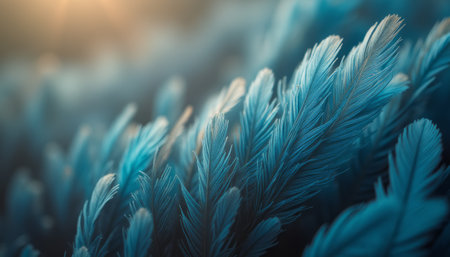 Soft blue feathers reveal stunning details and textures, illuminated by gentle light, creating a calm and tranquil atmosphere that highlights their beauty. Details matter.