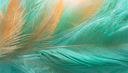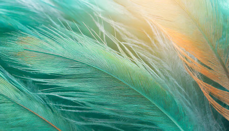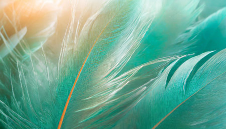 Vibrant textures of bird feathers showcasing delicate patterns and glowing accents