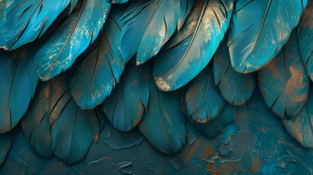 A captivating arrangement of turquoise feathers showcases intricate patterns and textures, evoking a sense of natural beauty and creativity.