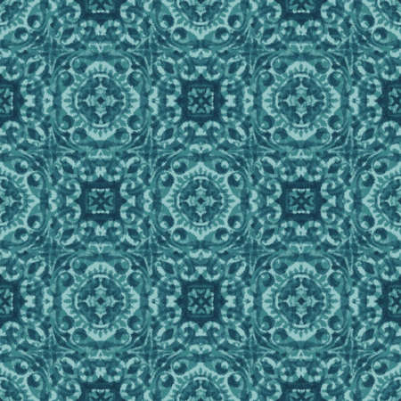 Seamless Tile Ethnic. Persian and Moroccan Styles. Islamic Blue Tile. Abstract Artistic Ethnic Background. Fashion Rug Design. Watercolor Tile Ethnic.