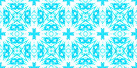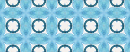 Seamless Tile Ethnic. Artistic Drawn Ethnic Illustration. Blue and White Snowflakes. Talavera Style. Fashion Textile Design. Watercolor Tile Ethnic.
