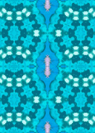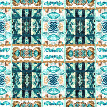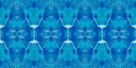 Geometric pattern. Fabric design. Rhombus seamless print. Kaleidoscope style. Ethnic geometric pattern. Tie dye texture. Blue, turquoise, green colors. Watercolor wallpapers. Hand drawn.