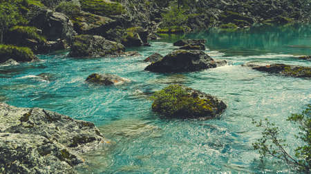 Mountain river with clear water in the Altai mountains, Russia