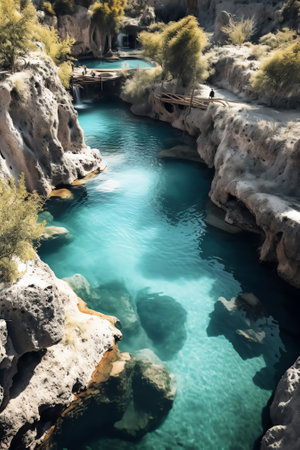 Generative AI : Aerial view of a small lake with turquoise water in Cetina Croatia