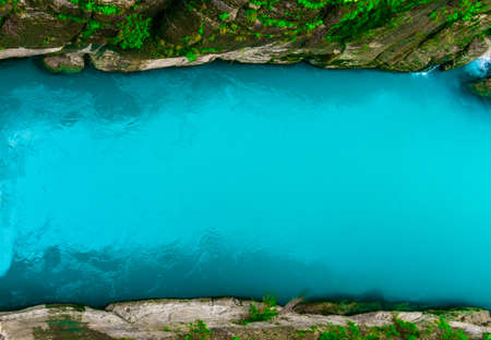 Aerial view of turquoise river in the mountains in summer