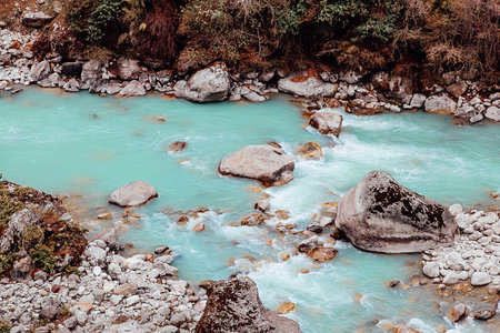 Beautiful mountain river in Himalayas. Nepal. top view.