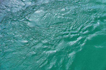 The texture of the waves of turquoise color of fast-flowing water in the river. abstract nature background.