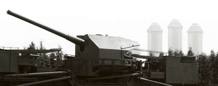 artillery ship installation from the museum on a white background