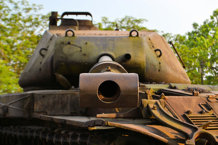 old Soviet tank gun barrel close up
